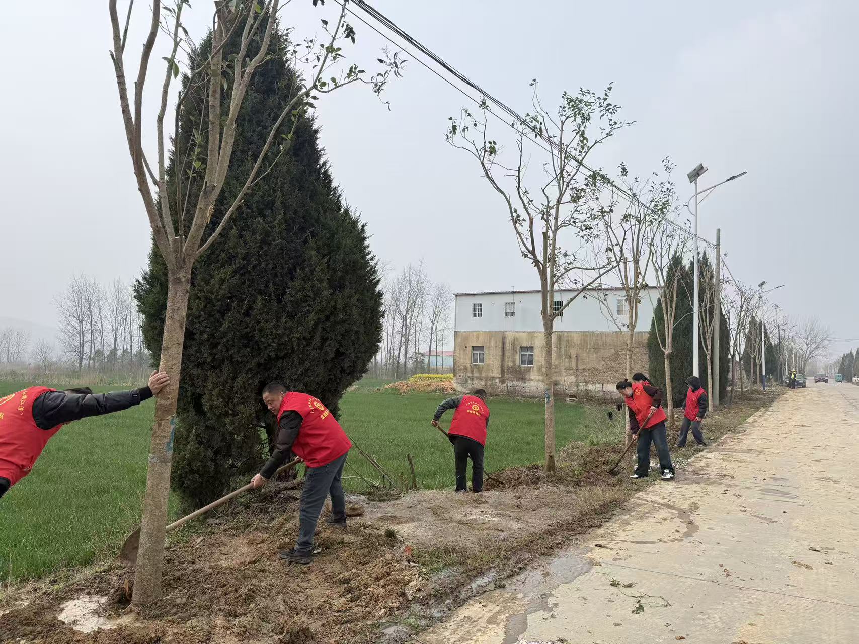 活动现场,志愿者们早早来到指定植树区域,领取树苗、铁锨、水桶等工具后,迅速分组、分工协作,各司其职又密切配合。党员干部带头示范,挥锹挖坑、丈量间距,确保树坑大小适中、行距规整;志愿者们细心扶苗正株,让树苗保持挺拔端正,随后挥锹培土、层层压实,防止树苗倒伏。从挖坑到定植,每一个环节都认真细致、有条不紊,大家干劲十足、热情高涨,汗水浸湿了衣衫,却丝毫没有消减植树的热情。经过一番辛勤劳作,一排排崭新的树苗整齐挺立在道路两旁,原本空旷的地块瞬间焕发出勃勃生机,成为乡村一道清新的风景线。