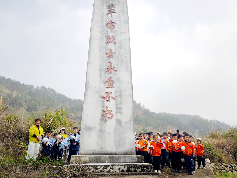 大班幼儿在老师带领下,徒步前往店前镇叶湾烈士塔开展祭扫活动。全体师幼肃立默哀,聆听革命英烈事迹。孩子们献上自制小白花,在庄重的仪式中接受红色洗礼,厚植爱党、爱国、爱家乡的情感。