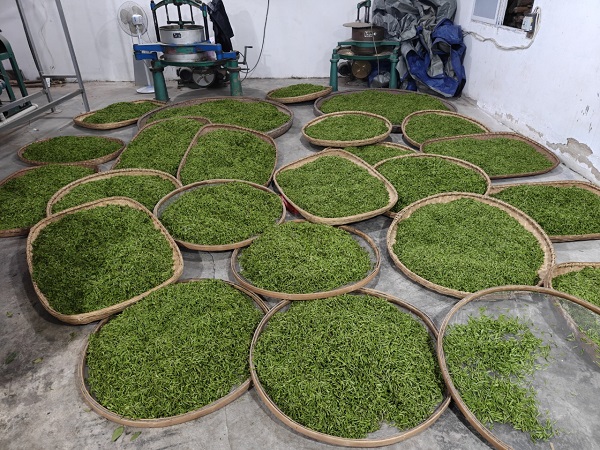 茶机生产当天,茶农们纷纷将刚采摘的鲜嫩茶叶运往茶厂。经过严格的筛选、称重、登记,一筐筐鲜叶被送入加工车间。据统计,仅4月7日,茶厂就收购鲜叶超过500斤。这一举措不仅让茶农手中的鲜叶有了稳定的销路,更保障了茶叶的品质和价格,让茶农们吃下了“定心丸”。